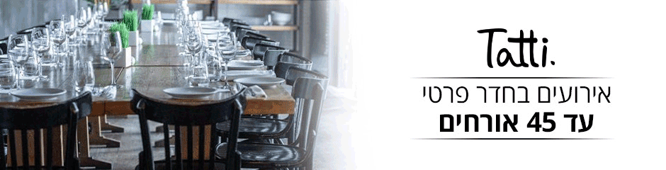 דרך השלום 53, גבעתיים 03-5392500 להזמנת שולחן / משלוח בבקשה לחצו על הלינק המתאים בראש האתר. רוצים לחגוג אירוע בטאטי גבעתיים? כתבו לנו כאן ונספר לכם על החדר הפרטי המהמם שלנו!